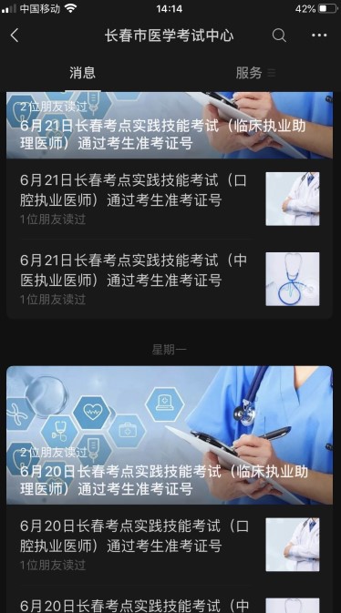 長春市考點(diǎn)國家醫(yī)師資格考試考生可根據(jù)“長春市醫(yī)學(xué)考試中心”微信公眾號,根據(jù)當(dāng)日公布的合格名單,按照準(zhǔn)考證號查詢考試通過情況,最終考試成績以國家醫(yī)學(xué)考試網(wǎng)(https://www.nmec.org.cn/)公布為準(zhǔn)!醫(yī)學(xué)教育網(wǎng)編輯會及時幫助大家查詢官網(wǎng)發(fā)布的通知,并且更新網(wǎng)站,預(yù)祝各位都能取得好成績!