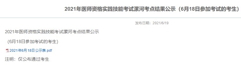 2021年醫(yī)師資格實踐技能考試漯河考點結(jié)果公示(6月18日參加考試的考生)已發(fā)布。