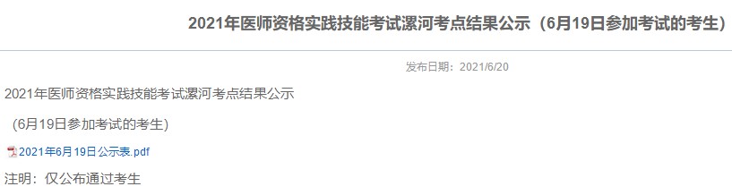 2021年醫(yī)師資格實(shí)踐技能考試漯河考點(diǎn)結(jié)果公示(6月19日)