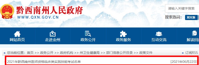 黔西南州人民政府發(fā)布2021年國家醫(yī)師技能成績合格名單