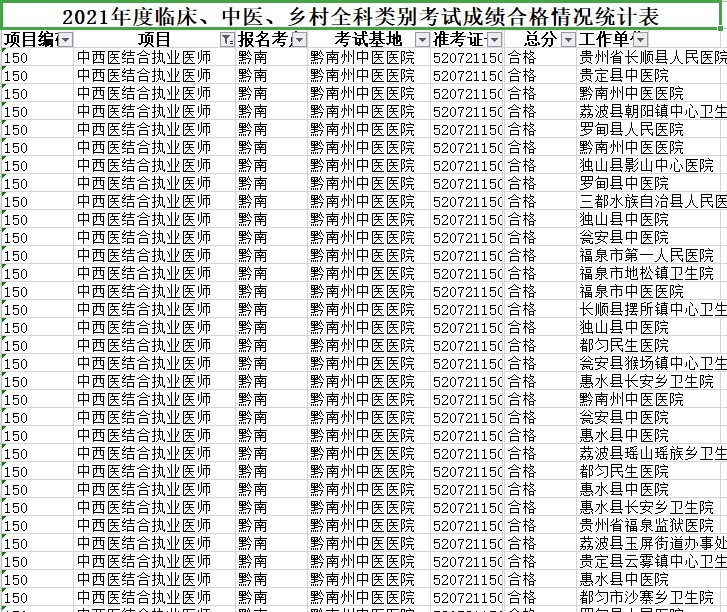 2021年中西醫(yī)結(jié)合執(zhí)業(yè)醫(yī)師黔南考點(diǎn)實(shí)踐技能考試合格名單