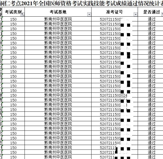 附件:銅仁考點2021年全國醫(yī)師資格考試實踐技能考試成績通過情況統(tǒng)計表.xlsx