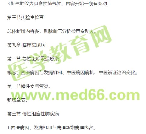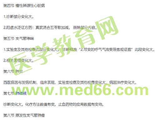 2.中醫(yī)病因病機(jī)、臨床表現(xiàn)與并發(fā)癥、中醫(yī)辨證論治變化大。診斷與鑒別診斷部分變化。西醫(yī)治療穩(wěn)定期治療與急性加重期順序互換,且內(nèi)容變化。