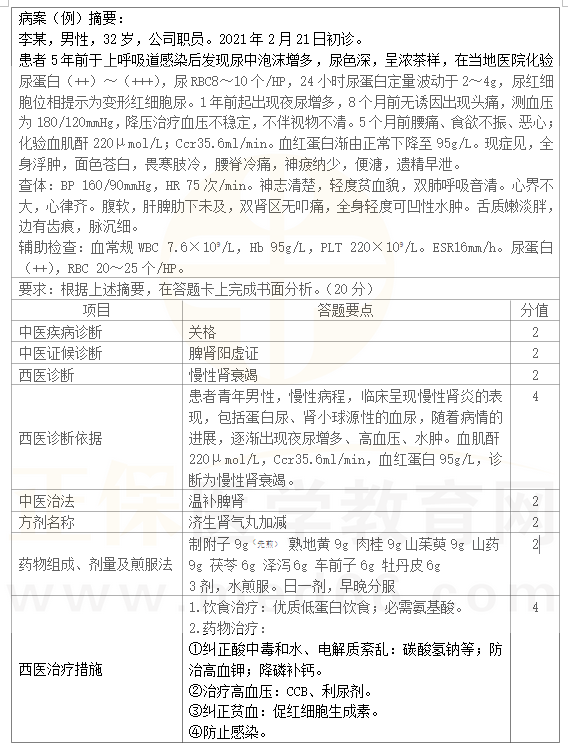 - · 2022年中西醫(yī)實踐技能病例分析【泌尿系統(tǒng)疾病】練習(xí)題:慢性腎小球腎炎(水腫)