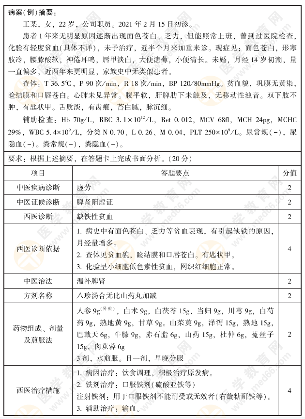 2022年中西醫(yī)執(zhí)業(yè)醫(yī)師實(shí)踐技能第一站【病例分析】練習(xí)題5號(hào):虛勞
