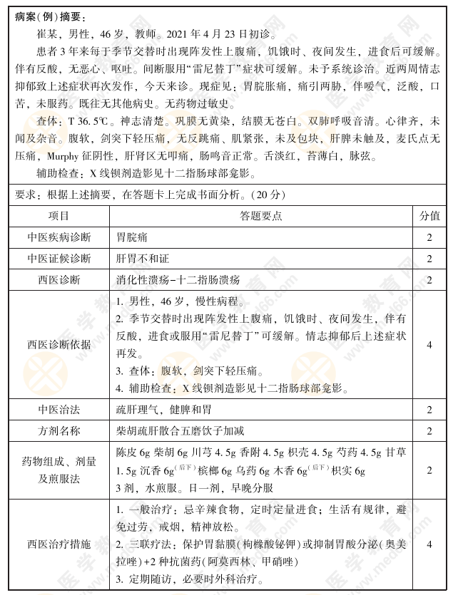 2022年中西醫(yī)執(zhí)業(yè)醫(yī)師實踐技能第一站【病例分析】練習(xí)題3號:胃脘痛