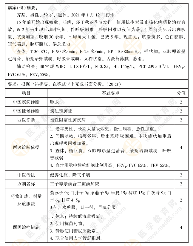2022年中西醫(yī)執(zhí)業(yè)醫(yī)師實(shí)踐技能第一站【病例分析】練習(xí)題1號(hào):肺脹