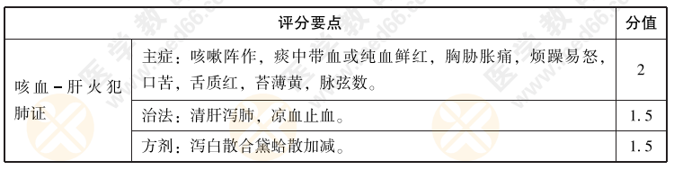 2022年中西醫(yī)執(zhí)業(yè)醫(yī)師實踐技能【中醫(yī)臨床答辯】01號題:試述咳血肝火犯肺證的主癥、治法和用方