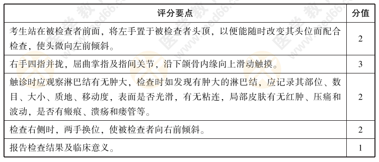 2022年中西醫(yī)執(zhí)業(yè)醫(yī)師實踐技能【體格檢查】01號題:請演示左頜下淋巴結(jié)的檢查方法