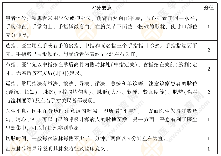 2022年中西醫(yī)執(zhí)業(yè)醫(yī)師實(shí)踐技能【中醫(yī)操作】01號(hào)題:診查體檢者脈象,敘述并演示操作方法