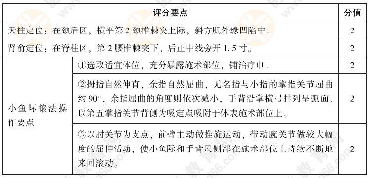 2022年中西醫(yī)執(zhí)業(yè)醫(yī)師實(shí)踐技能【中醫(yī)操作】06號(hào)題:試述天柱、腎俞穴定位,并演示小魚際滾法的操作
