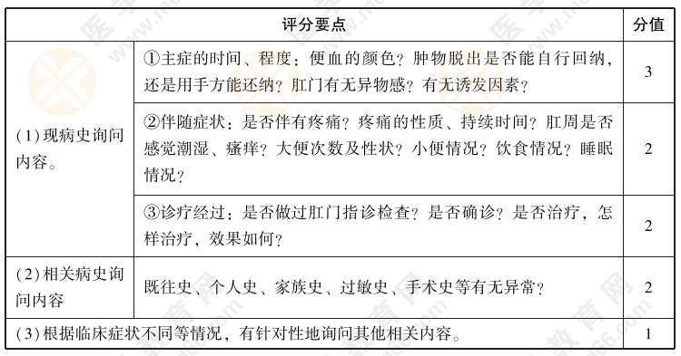 以上為“2022年中西醫(yī)執(zhí)業(yè)醫(yī)師實踐技能【病史采集】04號題:男,37歲,司機,常年久坐,近一個月大便帶血,便后有腫物脫出”全部內(nèi)容,由醫(yī)學(xué)教育網(wǎng)小編整理,更多信息請隨時關(guān)注醫(yī)學(xué)教育網(wǎng)!