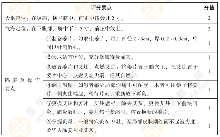 2022年中西醫(yī)執(zhí)業(yè)醫(yī)師實(shí)踐技能【中醫(yī)操作】04號(hào)題:試述天樞、氣海穴定位,并演示隔姜灸的操作