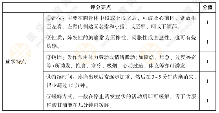 2022年中西醫(yī)執(zhí)業(yè)醫(yī)師實踐技能【西醫(yī)臨床答辯】04號題:試述典型心絞痛的五大癥狀特點