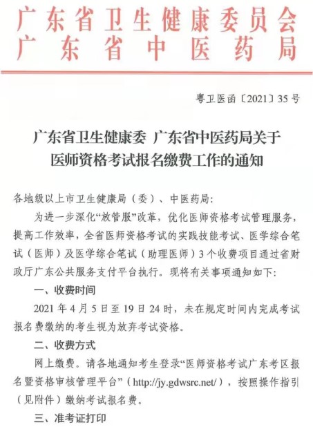 2021年廣東考區(qū)中西醫(yī)執(zhí)業(yè)醫(yī)師技能網(wǎng)上繳費標準/時間公告