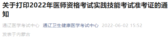 通遼考點(diǎn)關(guān)于打印2022年中西醫(yī)執(zhí)業(yè)醫(yī)師實(shí)踐技能考試準(zhǔn)考證的通知