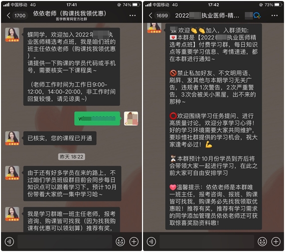 電腦端:購(gòu)課之后,登錄www.tymfj.cn,進(jìn)入我的網(wǎng)校我的家,點(diǎn)擊“掃碼入群”即可掃碼入群,添加班主任老師好友,提供聽課賬號(hào),等待入群。審核通過(guò)之后會(huì)及時(shí)拉您入班級(jí)群,跟同班同學(xué)一起備考!
