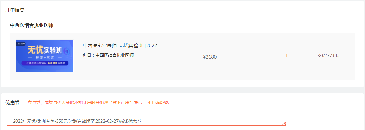 - · 萌虎“價”到!新年到!好課優(yōu)惠到!購買2022年中西醫(yī)執(zhí)業(yè)醫(yī)師課程可領(lǐng)1100元優(yōu)惠券!