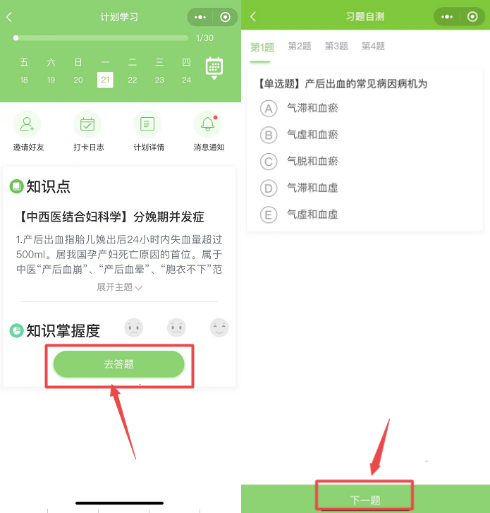 利用碎片化時(shí)間,每天幾分鐘隨時(shí)隨地快速了解考點(diǎn)和答題技巧!還等什么?加入“醫(yī)考愛打卡”,和所有醫(yī)考人一起奮戰(zhàn)吧!學(xué)習(xí)是一種習(xí)慣,讓好習(xí)慣從今天開始!