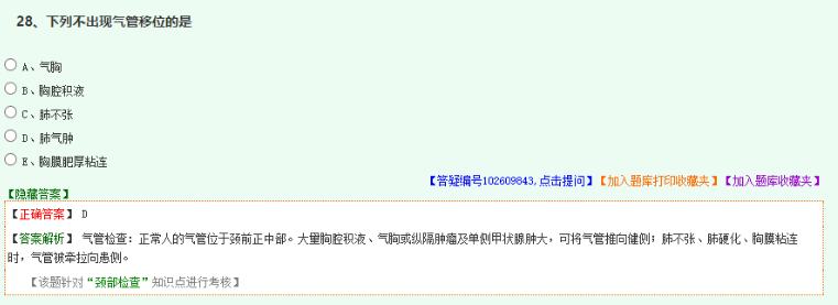 相關(guān)考點(diǎn)1:不會(huì)出現(xiàn)氣管偏移的是支氣管炎