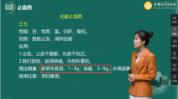 2023中西醫(yī)執(zhí)業(yè)醫(yī)師考試考點(diǎn)9:三七的用量