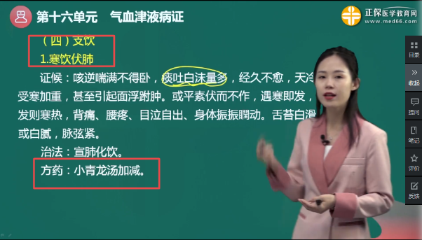 2023中西醫(yī)執(zhí)業(yè)醫(yī)師考試考點(diǎn)23:支飲——寒飲伏肺的選方