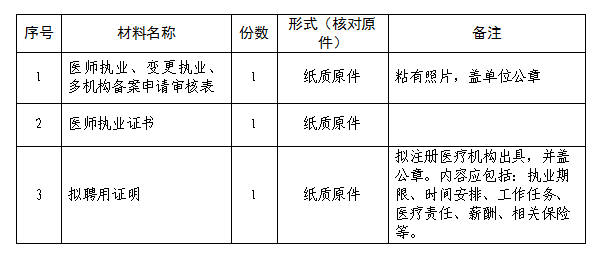 (四)申請辦理醫(yī)師多執(zhí)業(yè)機構備案需要哪些材料?
