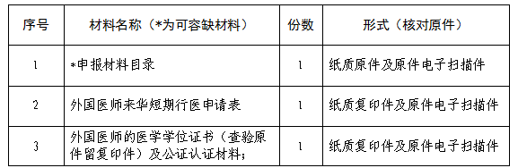 (四)外國醫(yī)師來華短期行醫(yī)申請辦理需要哪些材料?