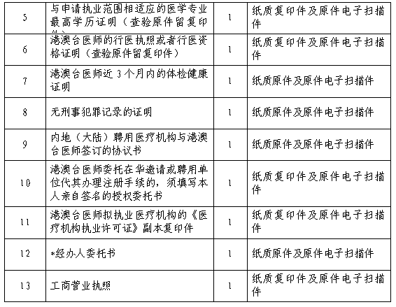 2、辦理《港澳醫(yī)師短期行醫(yī)執(zhí)業(yè)證書》、《臺灣醫(yī)師短期行醫(yī)執(zhí)業(yè)證書》需要提交的材料: