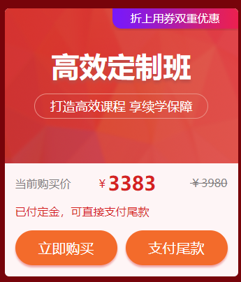 (2)11月11日之前已付定金的同學,可享受8折優(yōu)惠,折上用券也享受雙重優(yōu)惠!快去支付尾款吧!