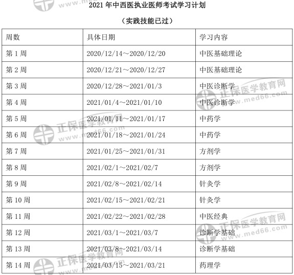 20年技能成績(jī)保留21年備考中西醫(yī)執(zhí)業(yè)醫(yī)師筆試復(fù)習(xí)計(jì)劃表