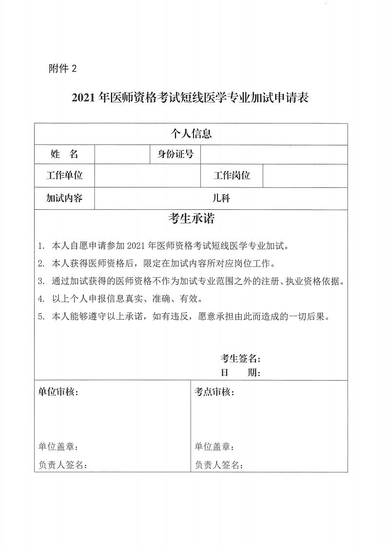 廣東考區(qū)2021年醫(yī)師資格考試短線醫(yī)學(xué)專業(yè)加試申請表