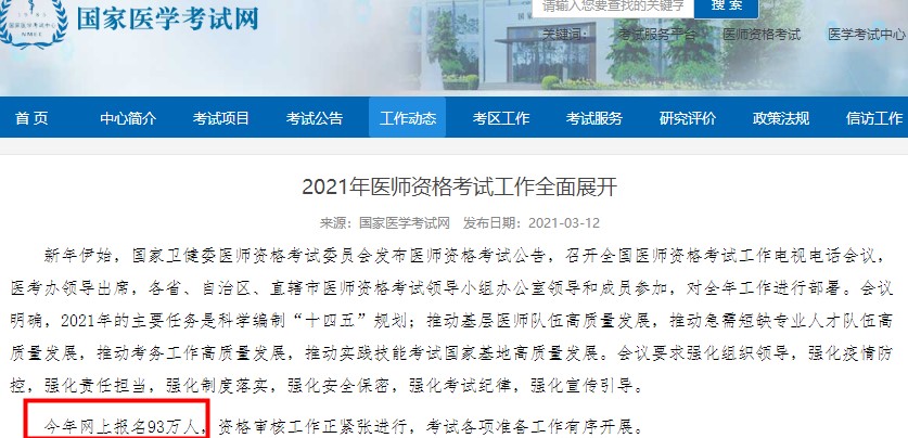 國家醫(yī)學(xué)考試網(wǎng)發(fā)布2021年醫(yī)師資格考試報名情況,今年網(wǎng)上報名93萬人,資格審核工作正緊張進(jìn)行,考試各項準(zhǔn)備工作有序開展。國務(wù)院十四五規(guī)劃“提升執(zhí)業(yè)(助理)醫(yī)師人數(shù)”,人大代表建議“準(zhǔn)予中醫(yī)學(xué)術(shù)型研究生報考執(zhí)業(yè)醫(yī)師”,醫(yī)師法修訂草案建議“提高報考學(xué)歷,5年后中專學(xué)歷不能參加醫(yī)師資格考試”,如果這些建議全部落實,目測2022年報考人數(shù)勢必還會增加,突破100萬大關(guān)還是有可能的。隨著報考人數(shù)劇增,考試難度會不會也加大呢,我們一起來詳細(xì)探討一下。
