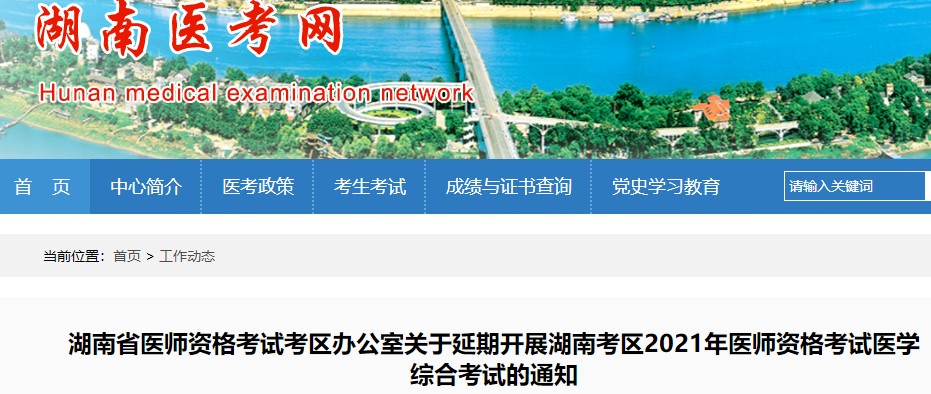 根據(jù)《湖南省醫(yī)師資格考試考區(qū)辦公室關(guān)于延期開(kāi)展湖南考區(qū)2021年醫(yī)師資格考試醫(yī)學(xué)綜合考試的通知》,湖南考區(qū)2021年醫(yī)師資格考試醫(yī)學(xué)綜合考試延期舉行,并已正式向國(guó)家衛(wèi)生健康委提交延期申請(qǐng)。具體考試時(shí)間另行確定。查看通知>>