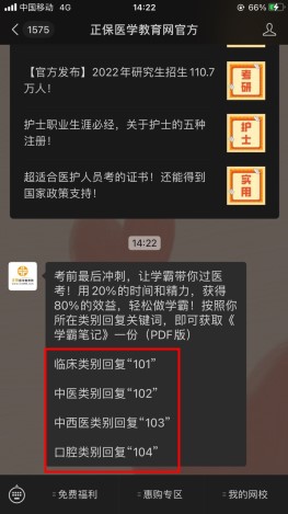1、掃碼,根據(jù)你所在類(lèi)別回復(fù)關(guān)鍵詞,例:中西醫(yī)類(lèi)別回復(fù)“103”。