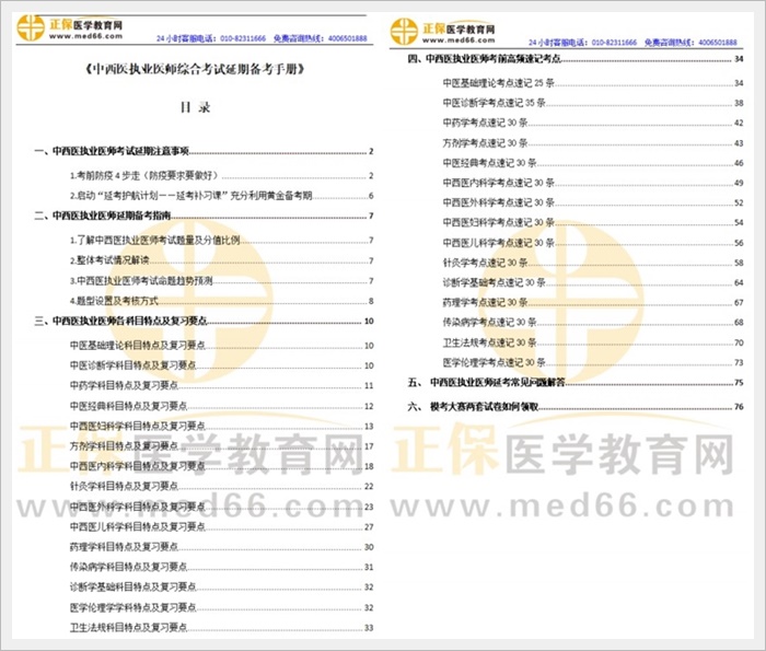 中西醫(yī)執(zhí)業(yè)醫(yī)師《全國(guó)2021年醫(yī)師延期備考手冊(cè)》具體是怎么樣的呢?目錄如下: