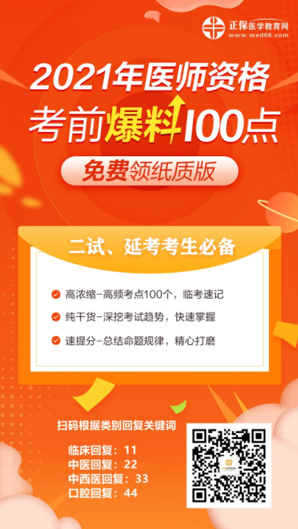 以上為“中西醫(yī)執(zhí)業(yè)醫(yī)師【考前爆料100點(diǎn)】免費(fèi)來領(lǐng)啦”全部內(nèi)容,由醫(yī)學(xué)教育網(wǎng)小編整理,更多信息請隨時(shí)關(guān)注醫(yī)學(xué)教育網(wǎng)!