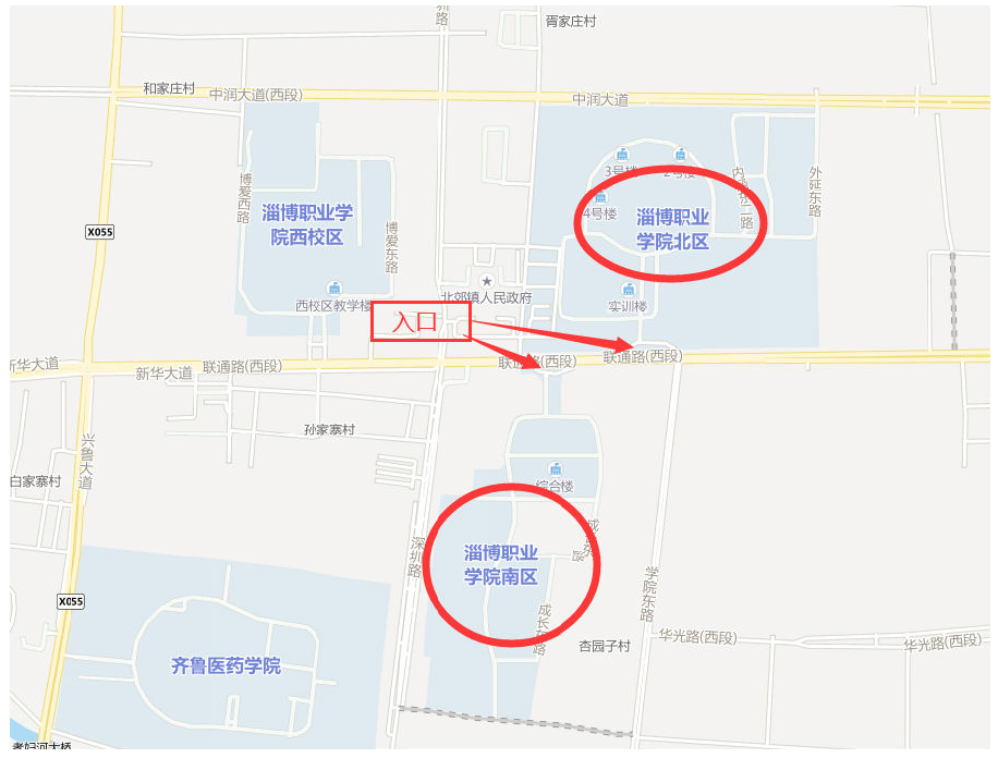 2021年國家醫(yī)師資格醫(yī)學(xué)綜合考試將在淄博職業(yè)學(xué)院南、北兩個校區(qū)進行,請各相關(guān)考生提前查看準(zhǔn)考證上的考試地點,以免走錯影響考試。淄博職業(yè)學(xué)院校區(qū)示意圖: