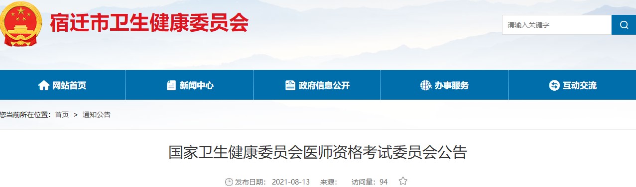 宿遷考點(diǎn)2021年中西醫(yī)執(zhí)業(yè)醫(yī)師綜合考試延期舉行!宿遷市衛(wèi)健委官方網(wǎng)站轉(zhuǎn)發(fā)了醫(yī)政醫(yī)管局《國家衛(wèi)生健康委員會(huì)醫(yī)師資格考試委員會(huì)公告》,下面是具體通知。