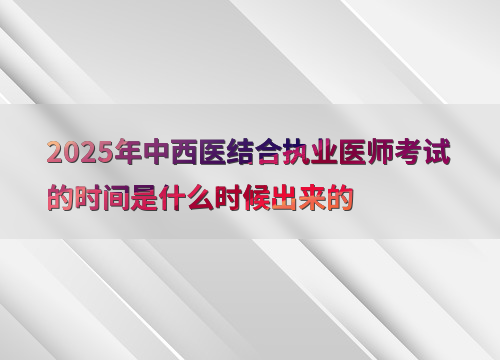 2025年中西醫(yī)結(jié)合執(zhí)業(yè)醫(yī)師考試的時(shí)間是什么時(shí)候出來的
