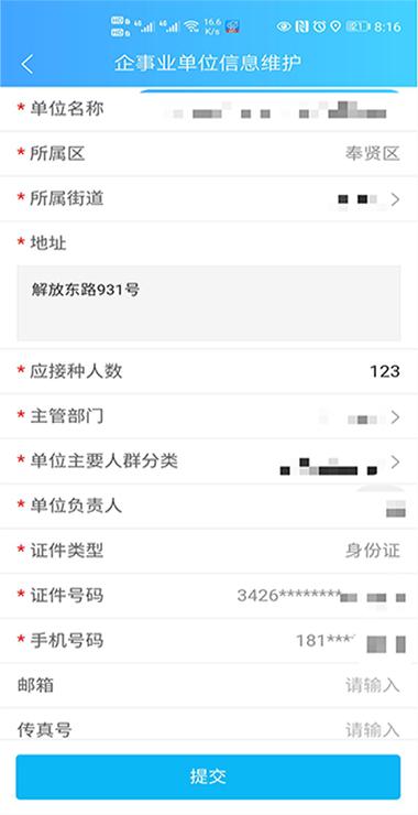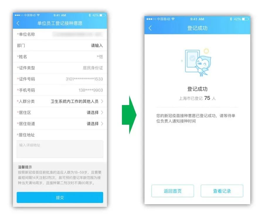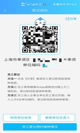單位職工登記接種意愿信息并提交。