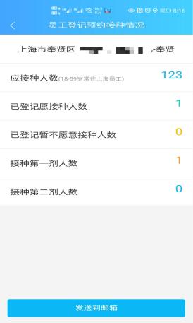 負(fù)責(zé)人可點(diǎn)擊員工登記預(yù)約接種情況按鈕,查看到本單位職工登記預(yù)約接種情況。員工明細(xì)表可以通過(guò)點(diǎn)擊發(fā)送到郵箱,健康云平臺(tái)會(huì)將表格附件發(fā)送到負(fù)責(zé)人預(yù)留的郵箱地址。