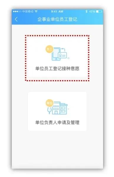 ●進(jìn)入界面:進(jìn)入“新冠疫苗接種服務(wù)”專區(qū),選擇“企事業(yè)單位員工登記”。