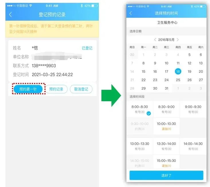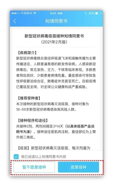 1)如您愿意接種,登記成功后,可進(jìn)入下一步預(yù)約接種。