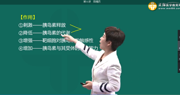 (1)降血糖 直接作用于胰島β細(xì)胞,刺激內(nèi)源性胰島素釋放。可降低正常人和胰島功能尚存患者的血糖,但對(duì)胰島功能完全喪失或切除胰腺者無效。作用機(jī)制:與胰島β細(xì)胞膜上特異性受體結(jié)合,抑制ATP敏感的鉀通道,開放電壓依賴性鈣通道,使胞內(nèi)鈣濃度增加,直接刺激胰島β細(xì)胞釋放胰島素。長(zhǎng)期用藥其降血糖作用與增加靶細(xì)胞膜上胰島素受體的數(shù)目和親和力,從而增強(qiáng)對(duì)胰島素的敏感性和胰島素的作用有關(guān)?;酋k孱愡€能減少胰高血糖素的分泌,也有利于降血糖。