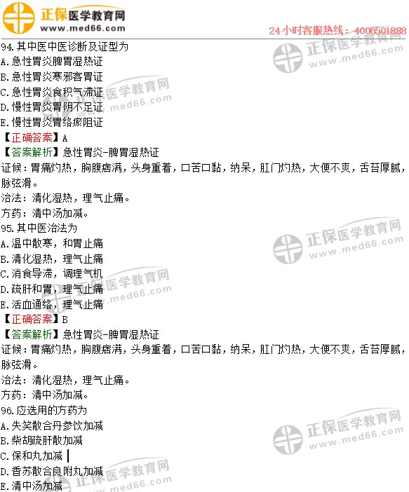 證候:胃痛灼熱,胸腹痞滿,頭身重著,口苦口黏,納呆,肛門灼熱,大便不爽,舌苔厚膩,脈弦滑。