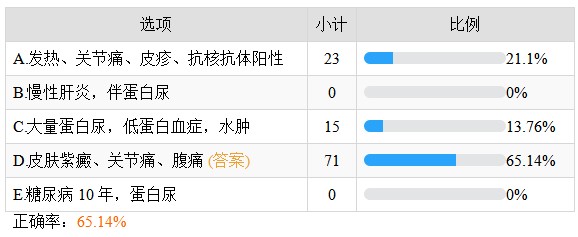 紫癜性腎炎的臨床表現(xiàn)是——正確率65.14%