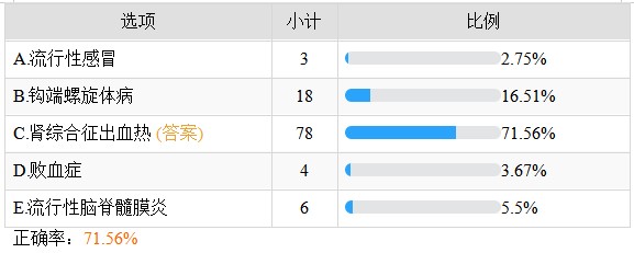患者女性43歲農(nóng)民因發(fā)熱全身不適頭痛5天——正確率71.56%