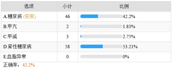 患者,男,50 歲。因消瘦、口渴、乏力2月來診——正確率42.2%