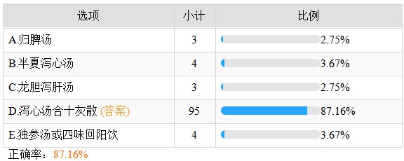 患者男50歲。現(xiàn)吐血呈咖啡色...首選方劑——正確率87.16%